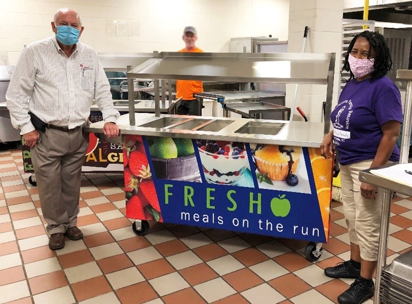 shelves to each lunch line can accommodate hot or cold foods without occupying valuable space on the main line.