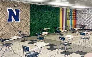 - Newburg Enlarged City School District in New York incorporated a turf wall where students could gather and take selfies with a themed backdrop.