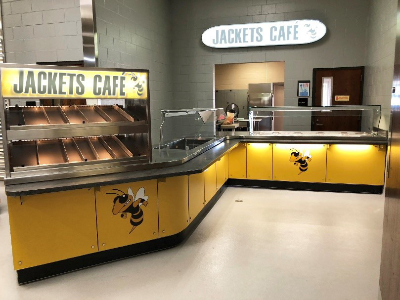 For example, a standalone station was installed in the corner of one school’s cafeteria and equipped with a sandwich slide and refrigerator. Workers could quickly serve pre-made sandwiches and drinks from a small footprint.